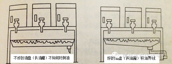 ① 油盘的目的:不让油流到地面上,并收集起来,因此收集的油要集中在一起进行管理