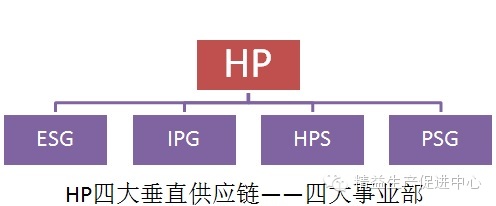 先看惠普的四大“垂直供应链”,它们是指惠普的四个“事业部”。各事业部按产品划分,每个事业部都是几十亿美元的商业实体,规模等同于一个财富500强企业。