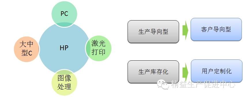 3、客户定制式(合同制造模式):产品组合完全根据客户需求而定。惠普在已有的模块式零部件基础上,为客户重新配置。虽然每个客户定制的量可能不大,但客户所获价值却大大提高。核心竞争力是产品用户化。