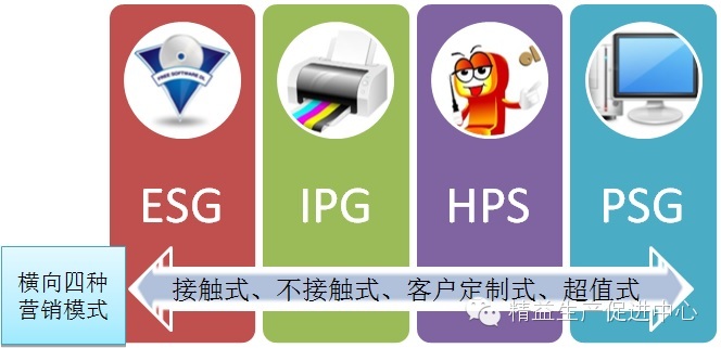 这四大事业部,在运作、利润目标、成本结构、制造流程和供应链特性等方面都截然不同,但客户却存在重叠的状况。因此惠普按客户需求,又划分出四种营销模式。