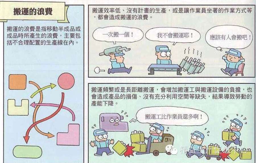 要消除搬运的浪费,就要在搬运距离和搬运次数等方面加以改进。