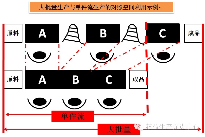 3、节省生产空间:由于单件流是快速出成品的制程,在生产过程中无需库存任何材料,大大节省了生产空间。