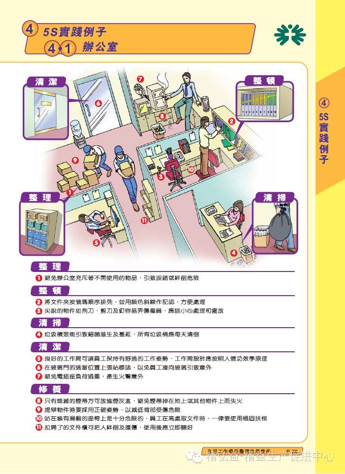 经过前几期所学,相信大家对5S已经有个认识熟悉的过程,要做好5S要把整理、整顿、清扫、清洁像滚动的车轮循环地实施总结过程,养成好的习惯,贵在坚持。这期我们介绍在不同行业的5S实践例子。