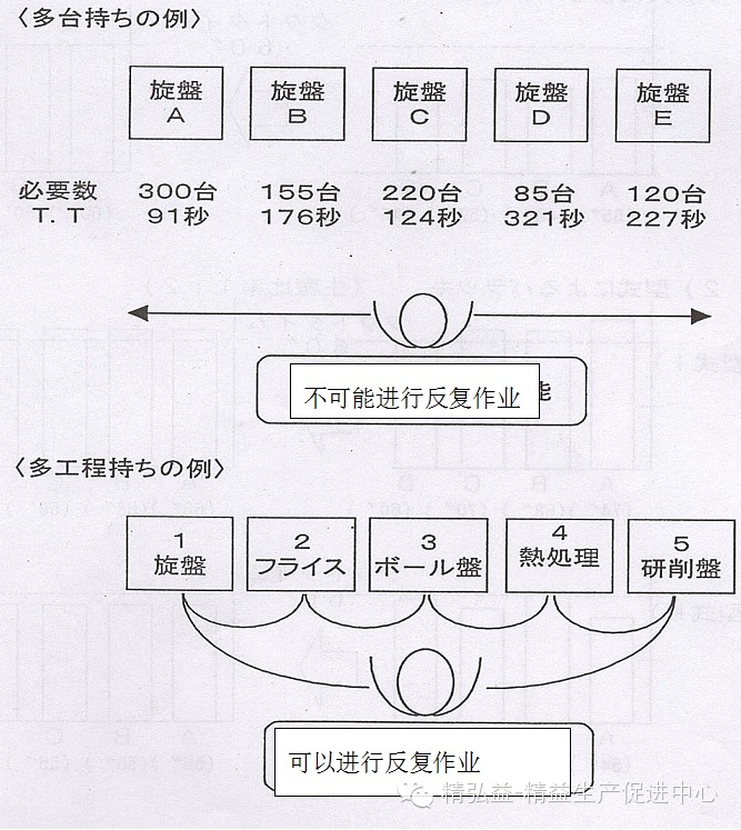 1.若要一个或一组工人操作节拍时间各各不同的线体(设备),则不能进行重复作业。因此有必要将节拍一样的工艺设计成能按照顺序操作的布局。