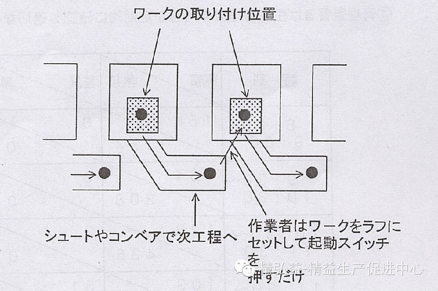 通过将在制品离开该工位的位置与加工位置分离,使操作工的手的直线运动成为可能。