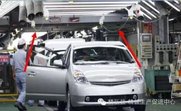 丰田生产线并不是拉绳后整条生产线马上停线,而是在拉绳后,如果小组主管(TL)能在节拍时间内解决问题,生产线继续移动。如果该工位无法在节拍时间内解决问题,生产线某一段停线(而不是整条线)。
