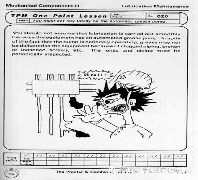 OPL是针对班组中某一人的疑问事项,包括技术问题或难点故障等等,由能够较好地解决问题、处理故障的人员编写教材(一页到两页的简单教材),召集相关人员进行集中讲解,从而达到信息资源的共享、经验的积累、教育效率的提高。