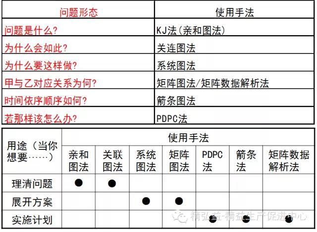 新QC七大手法的使用情形,可归纳如下: