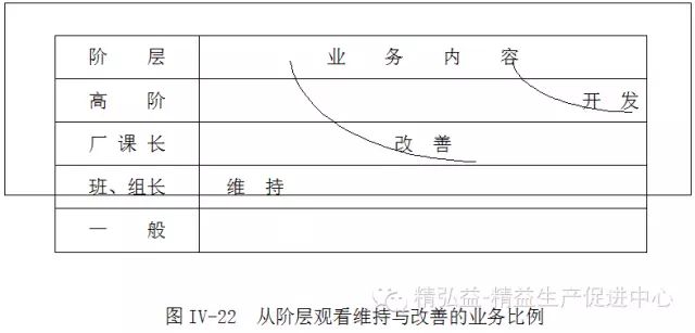 在圈活动的个别改善活动,从“阶层别业务的维持与改善”的比例(图IV-22)观之,个别改善领域自然而然地受到限定,因此,对于末端圈所选的个别改善主题,应弄清楚改善的必要性以及活性化的成长水平等并加以指导为重点。