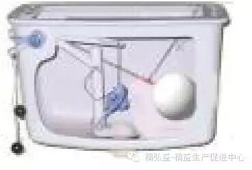 ——抽水马桶之水箱内设有浮球,水升至某一高度时,浮球推动拉杆,切断水源。