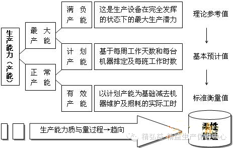 作为制造型企业,如何进行自身的生产能力评估,即'产能'有一个充分而客观的认识;以利于在制订实际生产计划中和人、物、机的配合。若以超出'产能'的工作量承载,情形会是有量而不能保质,难以满足顾客对质量和功能的要求;也会造成在制品与库存增加。如太少的'产能'又不能满足顾客的订单需求,同时也会造成成本浪费。因此,生产能力是需要根据当期现实情况加以分析和平衡的。见以下解读图示。