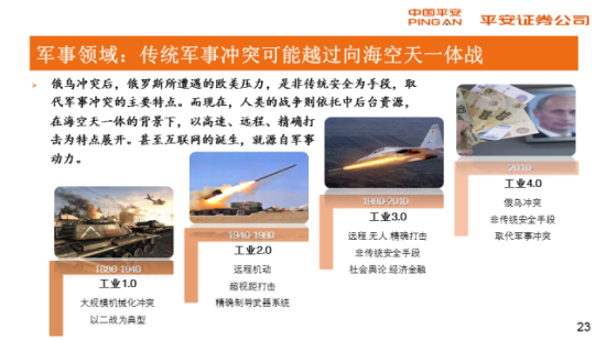 (九)军事领域:传统军事冲突可能越过向海空天一体化发展。