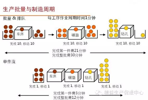 传统的生产模式是“捆包式”。这种模式将产品的制作分解成若干道工序,然后每一个工序由一个或多个工人来做,即每名工人手上都有一批半制成品,待他全部完成自己负责的工序后,才交给收发员,再交给另一名工人处理另一工序。这做法的好处是个人效率高,但缺点却是整体效率低,因为工人与工人之间 (即工序与工序之间) 容易出现闲置时间。再者,厂房内还会堆积大量半制成品,既浪费空间,也可能间接造成资金积压 (因半制成品未能及时出货) 。