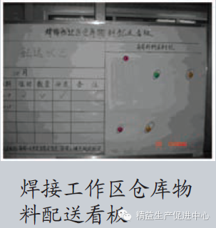 最后,以安全库存为标准,明确物料标识,如图2。对物料仓库进行可视化的规划,如图3,并建立仓库物料配送看板,如图4,及时沟通采购部门及供应商,做到快速补货,先进先出,保证物料的合理使用。