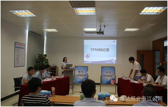7月中旬,浙江公司培训室内热闹非凡,由浙江公司TPM推进办主办的“唇枪舌战,四强争霸”TPM辩论赛正激烈展开。本次辩论赛旨在提高员工TPM技能和能动意识,得到了生产、制造四个部门以及人力资源及行政部的大力支持和热情参与,活动邀请到浙江公司厂长李志林、副厂长杨致富、广州精弘益宋传承老师担任评委。来自生产、制造部门的12名员工按各自部门组成4队两两展开厮杀,继而由两组胜方争夺最后的冠军。各队通过抽签决定比赛顺序及辩题。