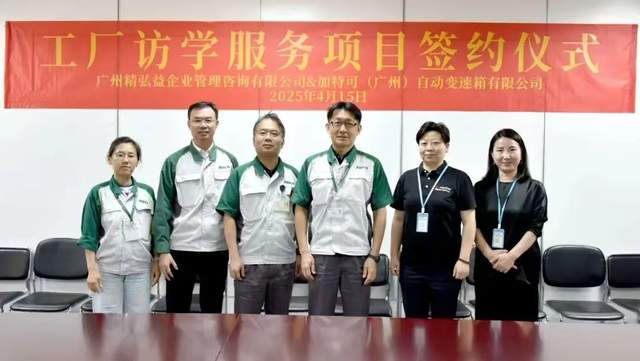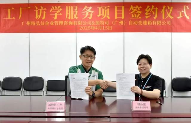 在制造业蓬勃发展、竞争日益激烈的当下,企业间的交流与合作变得愈发重要。一场意义非凡的签约仪式,如同一颗璀璨的启明星,照亮了制造业访学领域的前行之路。2025 年 4 月 15 日,加特可(广州)自动变速箱有限公司与广州精弘益企业管理咨询有限公司强强联合,就加特可广州工厂访学项目达成合作,为制造业的发展注入了新的活力。